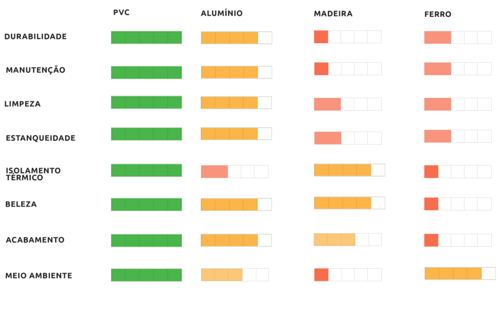 O PVC (policloreto de vinila) é um polímero termo-plástico produzido a base de sal e petróleo, ou gás natural, resultando num material auto-extinguível, inerte e reciclável, de forma a não agredir a natureza. Para cada uma dentre as muitas utilizações da resina de PVC, é necessário formular um composto específico através da adição de componentes diversos. Por exemplo, as formulações para janelas são completamente diferentes das utilizadas para tubos. Nas formulações para produção de esquadrias destacamos a adição de pigmentos, estabilizantes e, principalmente, protetores contra a radiação UV. Formulações de PVC destinadas à produção de esquadrias são resistentes à intempérie, mantendo uma estabilidade de cor, mesmo sob forte incidência solar.
